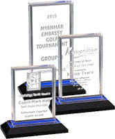 Acrylic Beveled Awards with Blue Reflective Bottoms