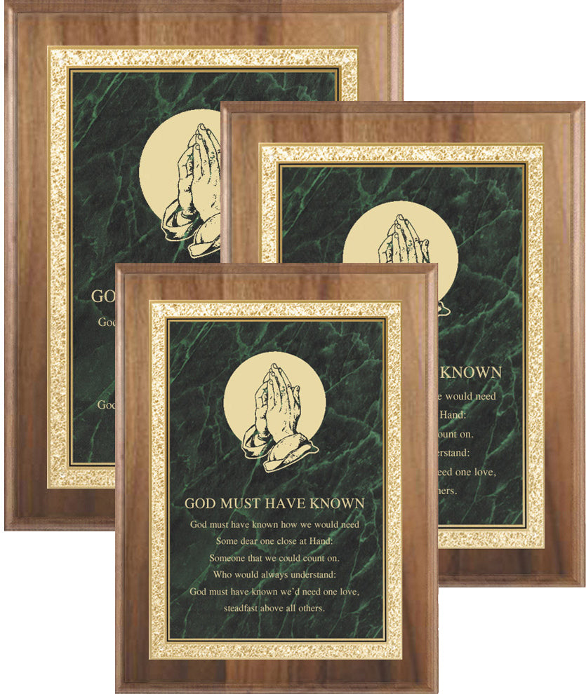 American Walnut Plaques with Solid Brass Green Marbleized Plate