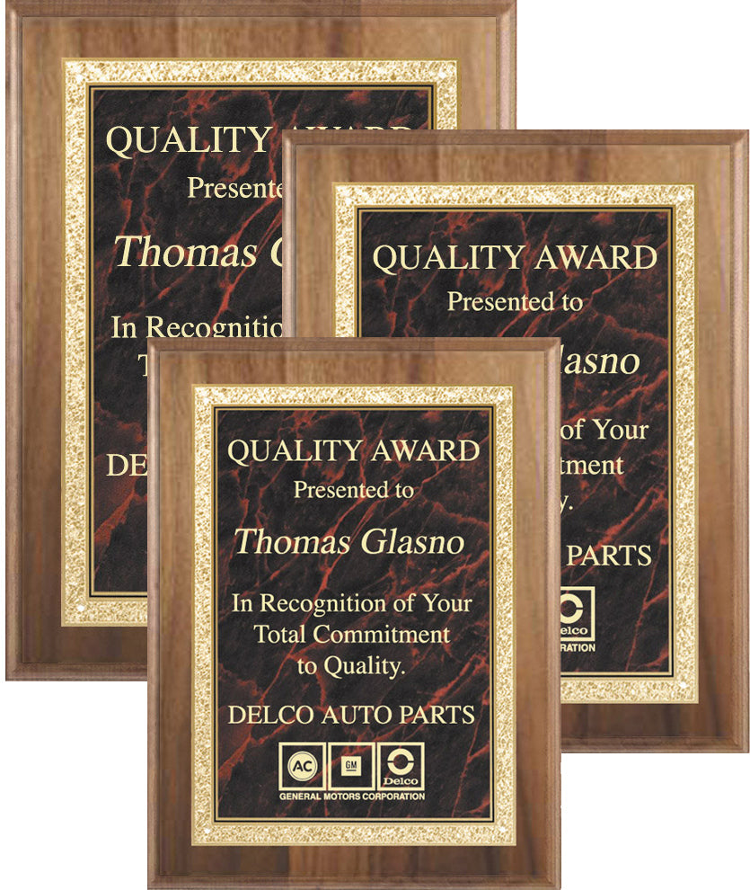 American Walnut Plaques with Solid Brass Red Marbleized Plate
