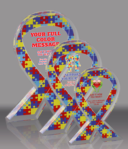 Autism Puzzle Awareness Ribbon Acrylic Awards - Color
