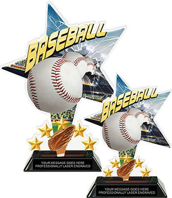 These exclusive acrylic trophies take full color graphics to a whole new level! A full color design on 1/4" thick acrylic. Comes on a synthetic, no-chip base.