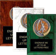 Details: Extra heavy resin color plaque mounts are hand-painted to provide incredible dimension and clarity! 10 sports/subjects to choose from! Choose black or white marbleized or blue, green, red or traditional woodgrain plaque finish.