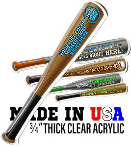 These Awesome acrylic bats are a great award for that special athlete. Perfect for Softball. Your message in full color and present with pride.