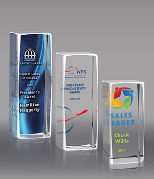 A beautiful clear block of crystal perfect for engraving your logo and message.