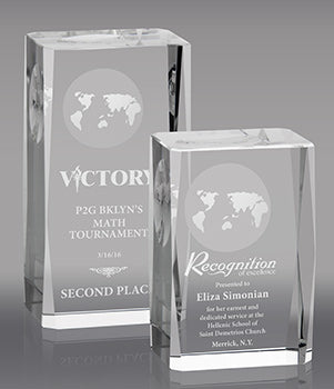 This beautiful crystal award has Inner domed semi-circle globe in the middle of it.