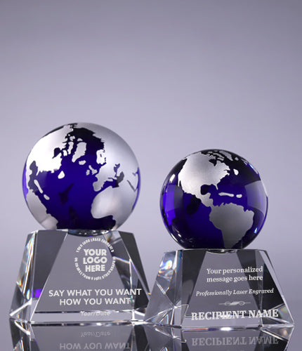 These beautiful Blue Crystal Globes on Crystal Pedestal Bases are out of this world. Globes are removable.