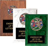 Choose black or white marbleized or blue, green, red or traditional woodgrain plaque finish.