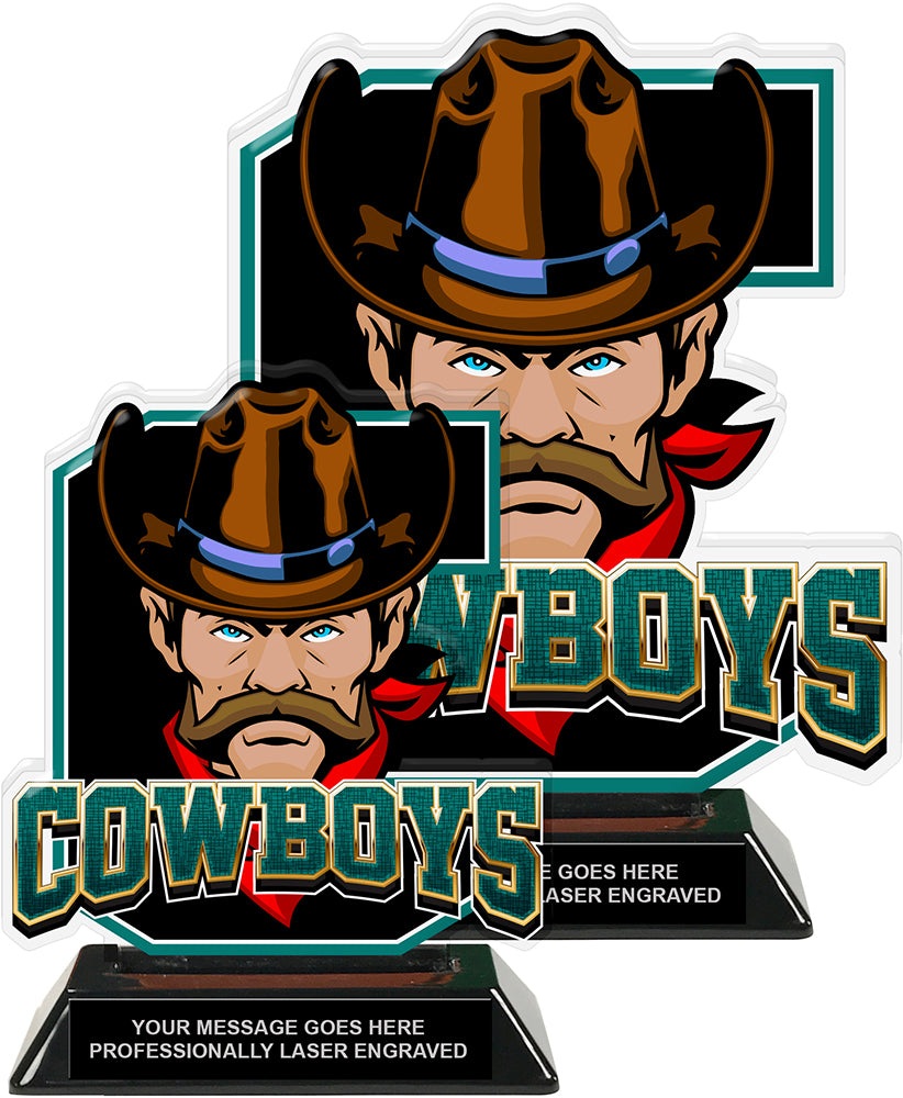 Cowboys Mascot Colorix-T Acrylic Trophies - Teal