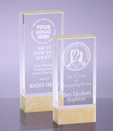Crystal Blocks with Beige & Caramel Marble Bases - Engraved