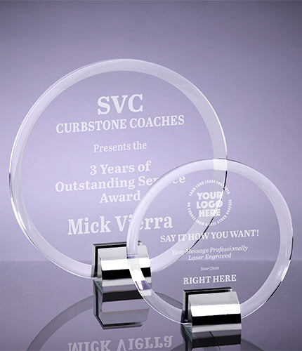 This Crystal Circle Award is a simply beautiful gift for any recipient. Beautiful circular award on a chrome base.