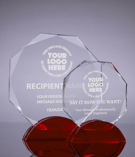 Crystal Octagon Awards on Red Double Arc Bases