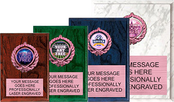 These wonderful plaques come in black or white marbleized wood and red, blue, green and traditional woodgrain finishes.