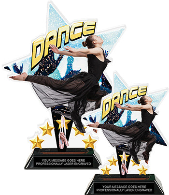 These exclusive acrylic trophies take full color graphics to a whole new level! A full color design on 1/4" thick acrylic. Comes on a synthetic, no-chip base.