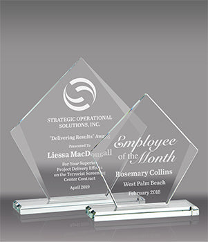 This beautiful Diamond Jade Crystal Award is a true piece of art.