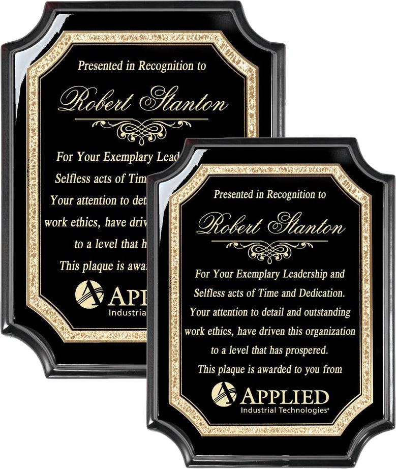Ebony Piano Finish Plaques with Gold Florentine Borders