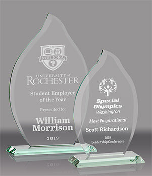 This beautiful Flame Jade Crystal Award is a true piece of art.