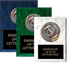 Choose black or white marbleized or blue, green, red or traditional woodgrain plaque finish.