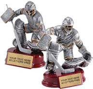 Hockey Goal Tender Pewter & Gold Resin Sculptures on Piano Finish Base