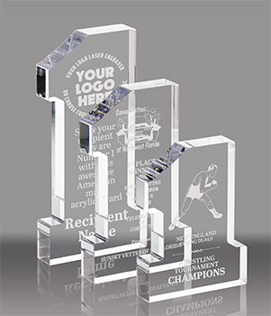 Beautiful acrylic number one that stands on its own is sure to please your first place recipient.