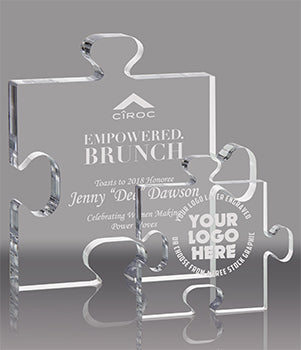 Puzzle Piece Clear Acrylic Awards- Engraved