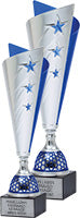 These metal silver and blue split cups with star cut outs stand proudly on genuine black marble bases.