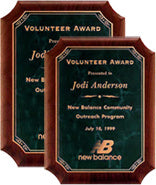 Solid American Walnut Plaque available in Emerald Finish Plate. Laser engravable plate(s). Solid brass engraving plate(s).
