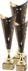 These two-tone metal black and gold split cups stand proudly on genuine black marble bases.