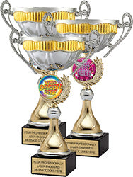 Two-Tone Silver and Gold Custom Insert Trophy Cups